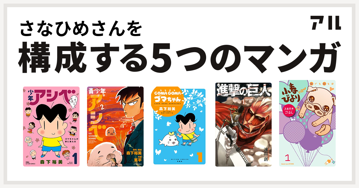 さなひめさんを構成するマンガは少年アシベ 青少年アシベ Coma Goma ゴマちゃん 進撃の巨人 小春びよりnew スキすきごはん 私を構成する5つのマンガ アル