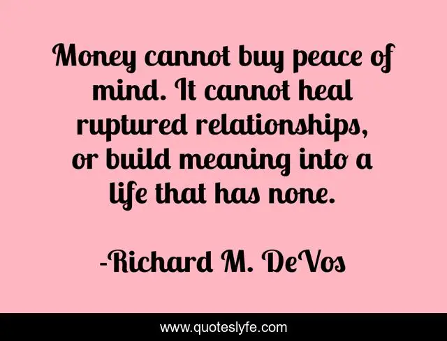 Money Cannot Buy Peace Of Mind It Cannot Heal Ruptured Relationships Quote By Richard M Devos Quoteslyfe